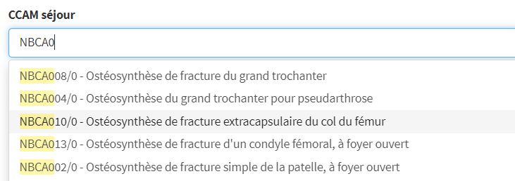 Proposition des actes CCAM à partir de la saisie des premières positions.