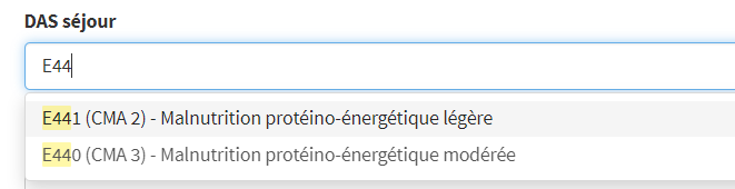 Seuls les codes CIM-10 autorisés en DAS sont proposés.