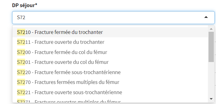 A partir d’une position, tous les codes CIM-10 correspondant sont proposés.